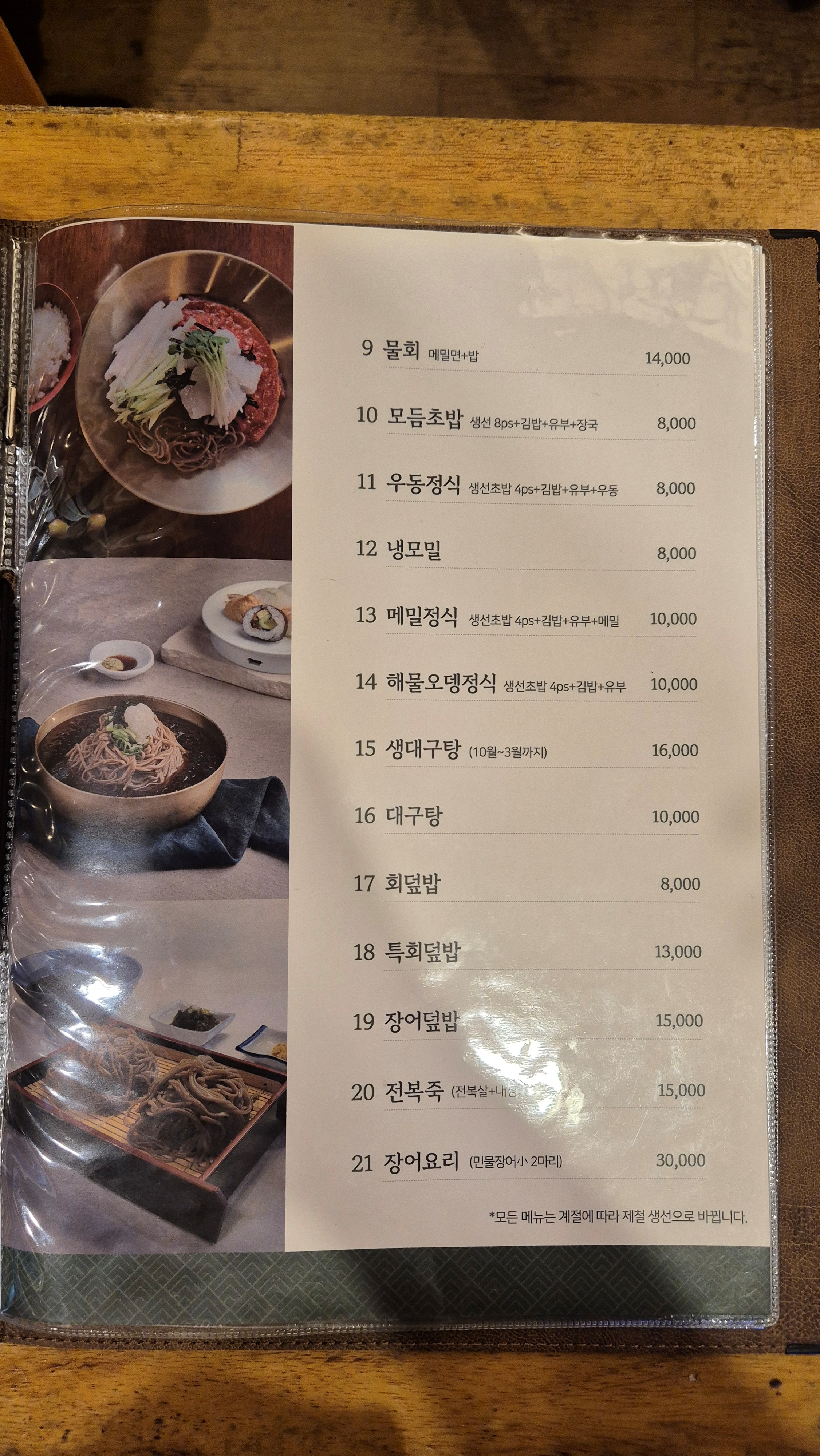 초밥 종류나 코스 구성이 한눈에 보여