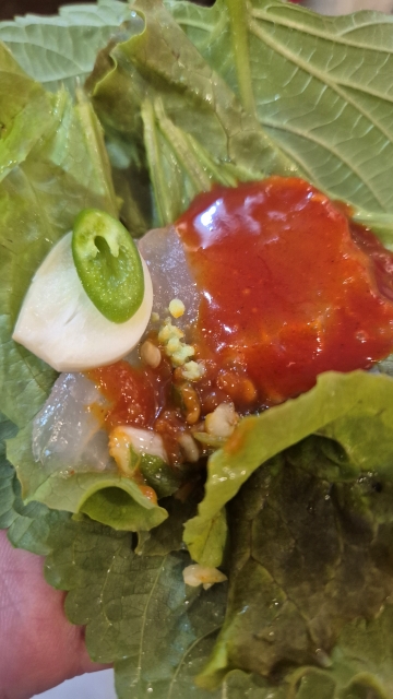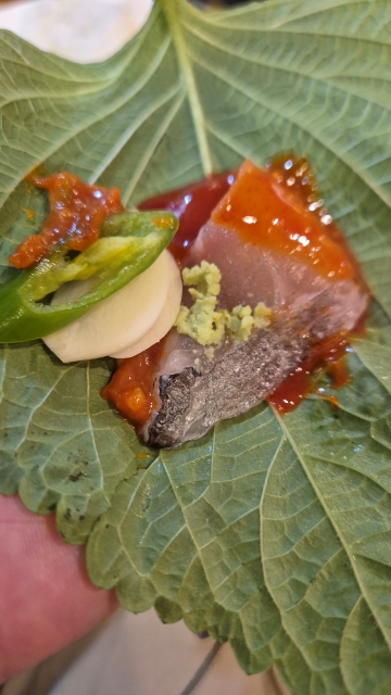 회는 초밥으로 먹고, 깻잎에 싸 먹고, 묵은지와도 싸먹고,