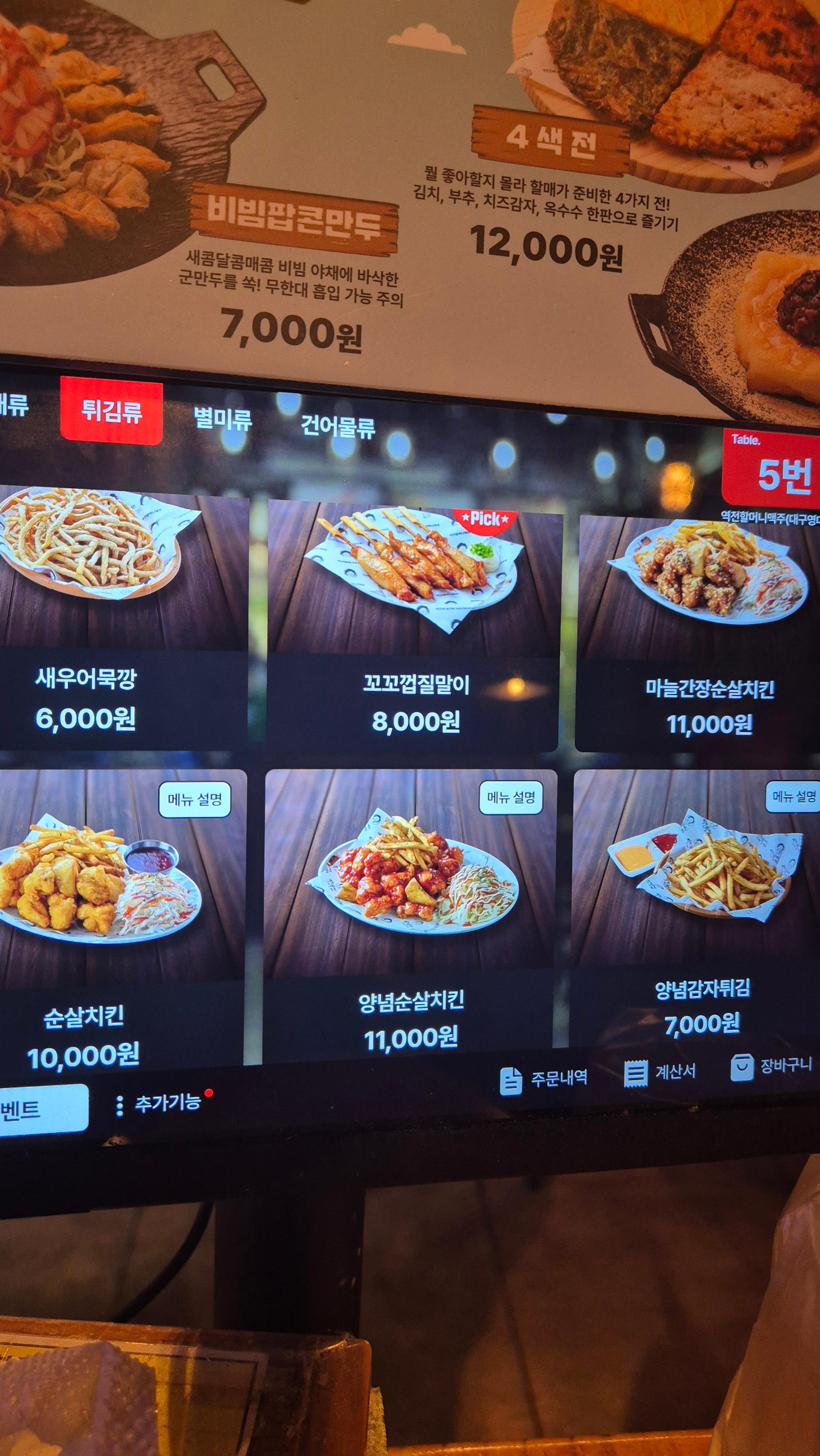 신메뉴, 추천 메뉴, 주류, 안주, 음료까지 다양하게 구성되어 있습니다.